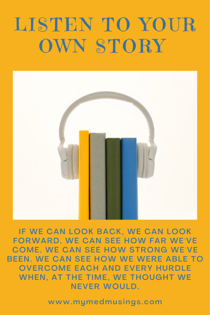 Listening to your own story may even help you understand why you respond and react emotionally, to new health issues as they arise or a change in life circumstances.