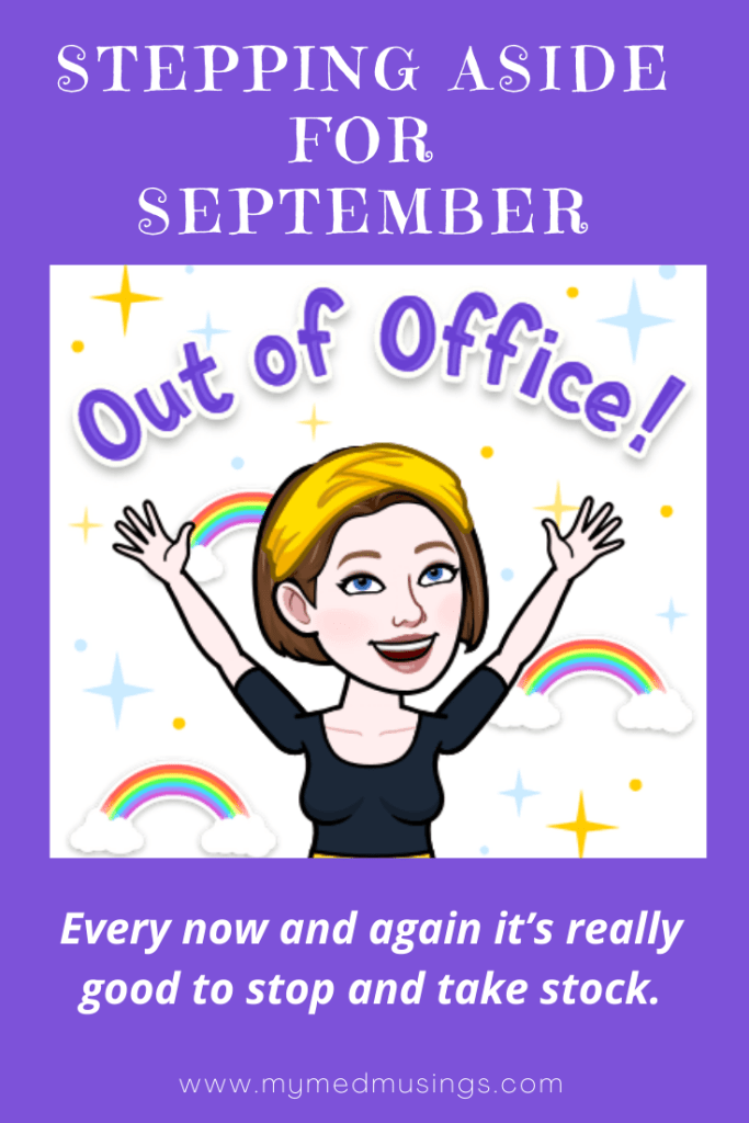 I can be still be contacted via DM during September or email: medicalmusings@bigpond.com, but I may not respond as quickly as usual on the same day!