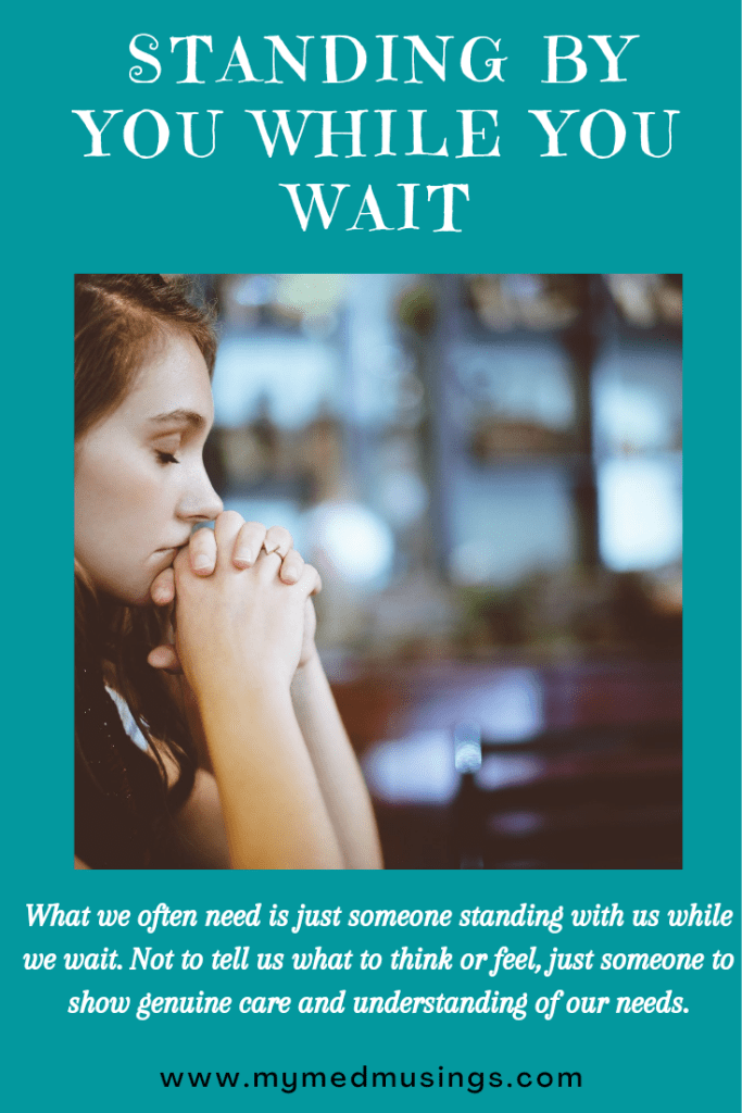 “What we often need is just someone standing with us while we wait. Not to tell us what to think or feel, just someone to show genuine care and understanding of our needs.”