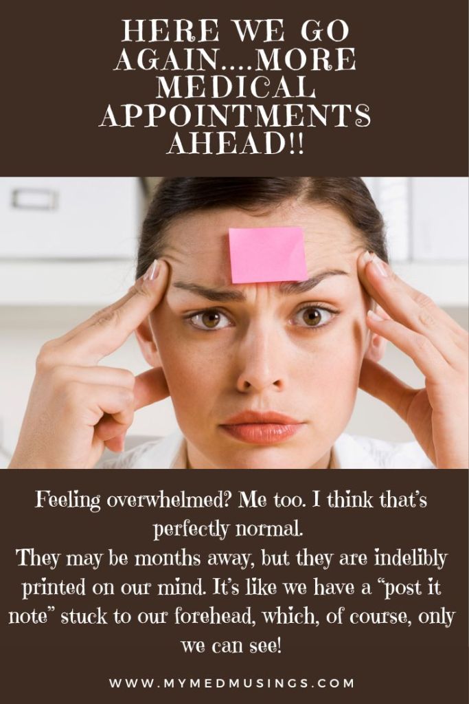 It happens to all of us with chronic illness. We look at our calendar and see an appointment looming in the future. The reality is we probably see multiple appointments looming with the variety of doctors on our team trying to keep us moving, living, surviving, etc.