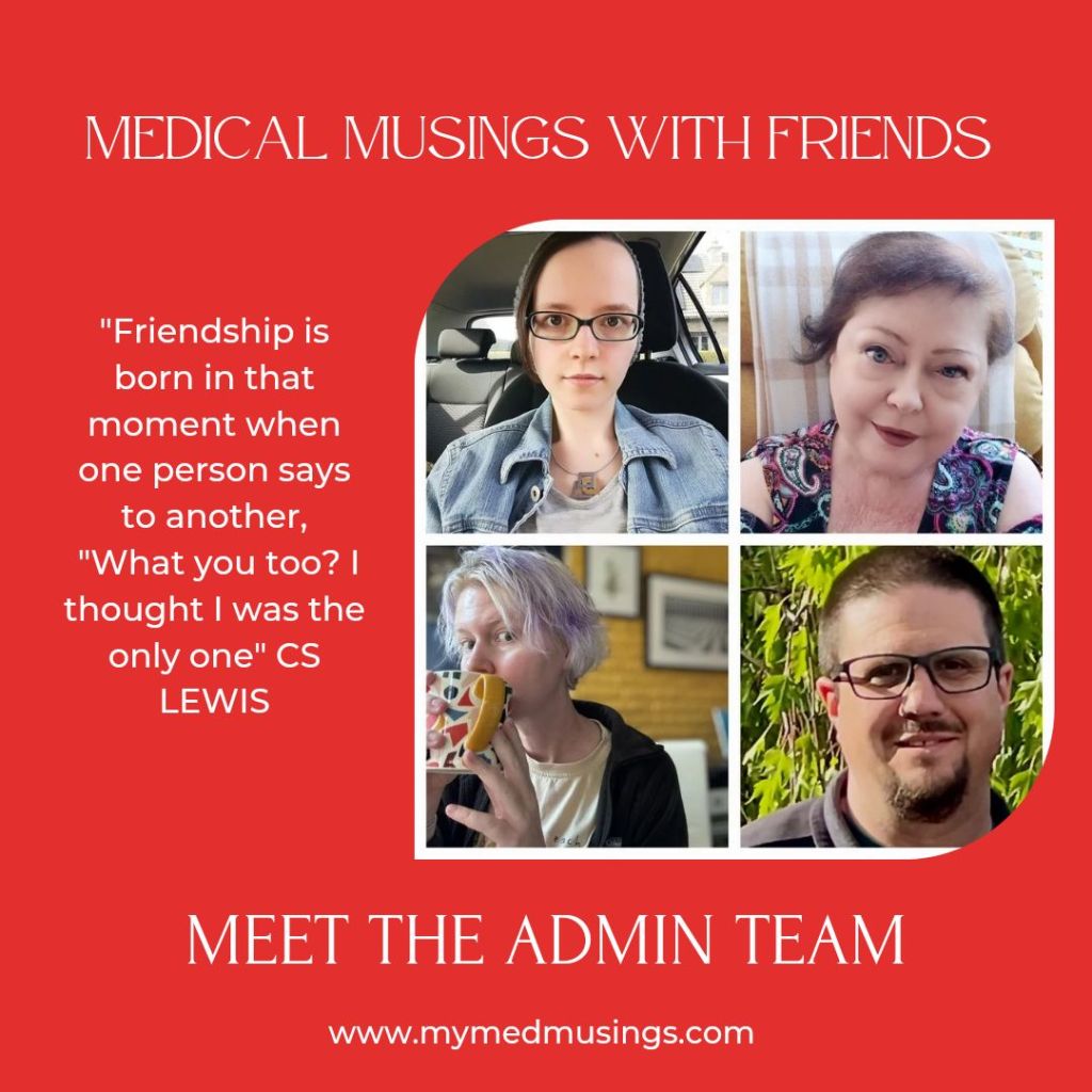 If you’re looking for genuine support, care, understanding and friendship, you are so welcome to join Medical Musings with Friends. Feel free to also share the link with any others you know who have a chronic illness and may benefit from a safe place to connect with others living with chronic and complex diseases, who truly understand the daily challenges. A warm welcome awaits.