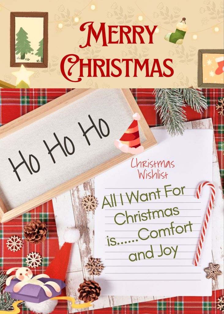 So my tears soon turned into prayer. I don’t want a Christmas list, I just want to let God know that all I want for Christmas is comfort and joy.